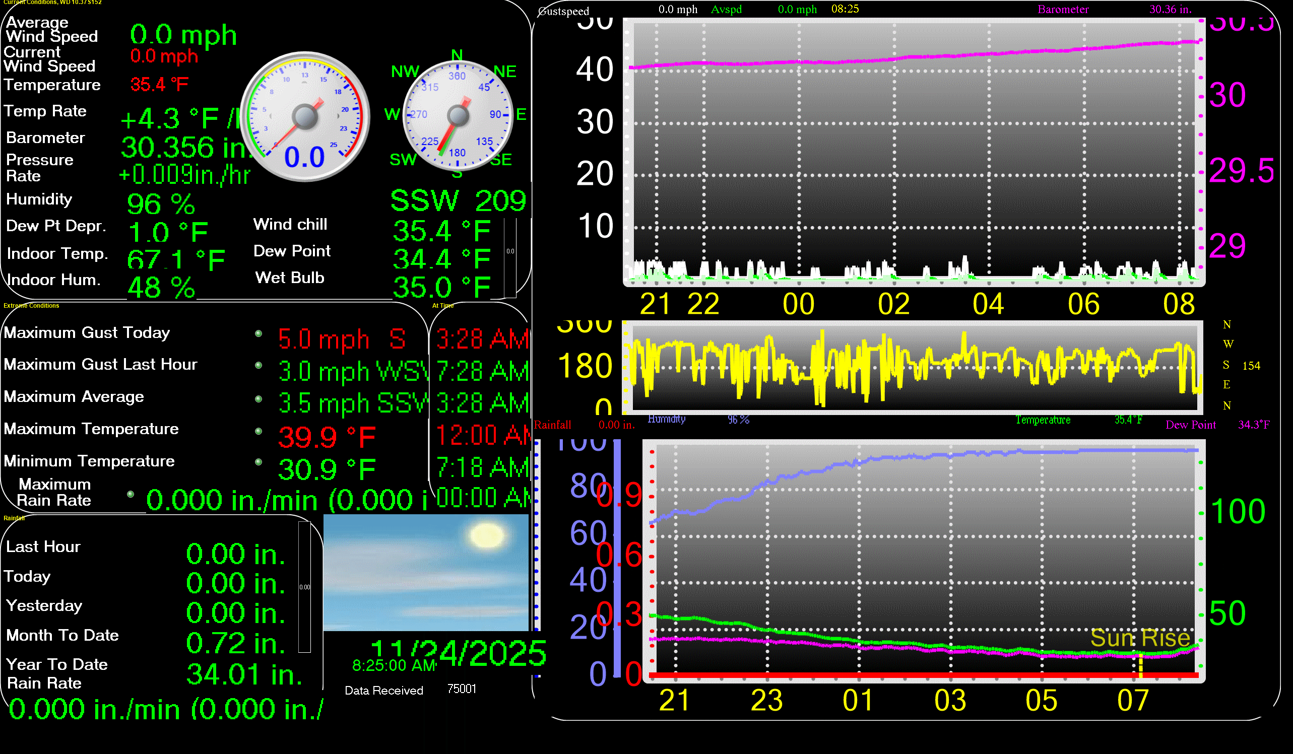 | LAST READING AT TIME: 8:25 AM DATE: November 24 2025, time of next update: 8:30 am | |||