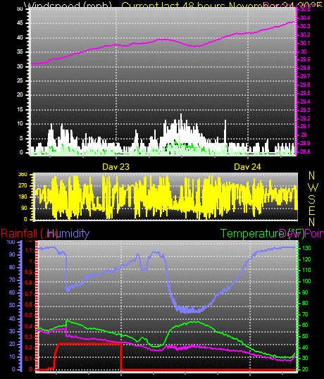 | Yesterdays rainfall | 0.00 in | DewPoint | 34.4°F (Wet Bulb :35.0°F ) |