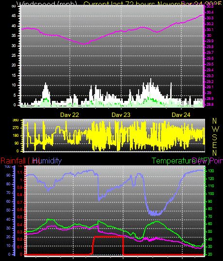 | Rainfall (last hour) | 0.00 in. (0.0 mm) | Rainfall (since midnight) | 0.00 in. (0.0 mm) --- |