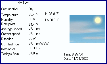 | Windchill Temperature | 35.4°F | Maximum Gust (last hour) | 3.0 mph at: 7:28 AM |